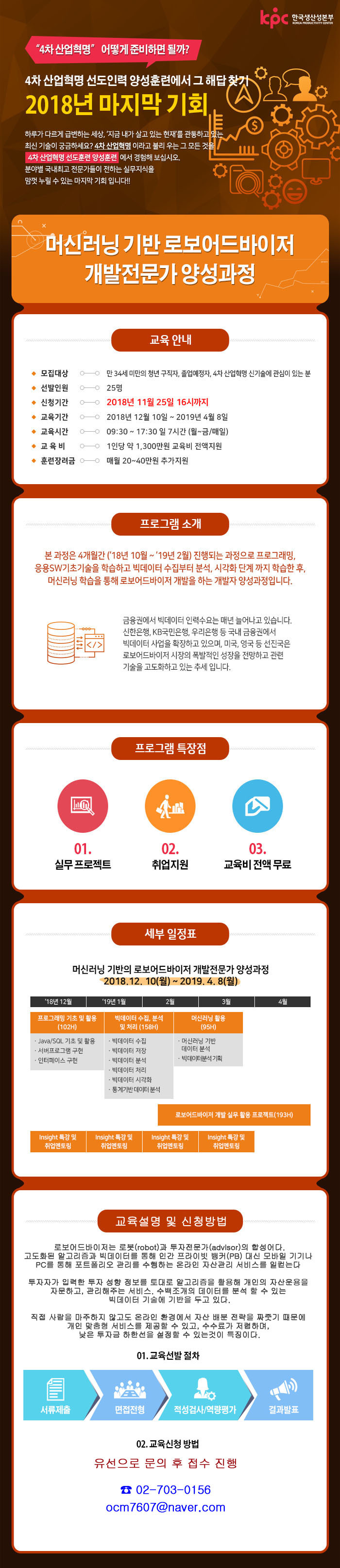 교육일정 : 2018. 12. 10 ~ 2019. 04. 08 (4개월)